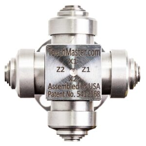 This CNC machine tool setter features a durable stainless steel body and a solid carbide for touch off.
